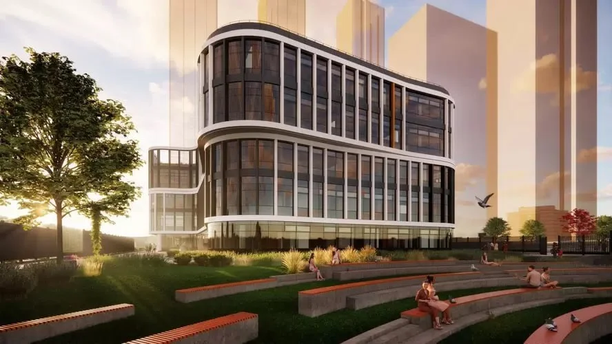 На территории квартала небоскребов Upside Towers в Бутырском районе откроют государственную школу на 325 мест. Архитектура четырехэтажного здания выполнена в стиле «киберархитектуры»: для фасадов будут использованы металлические панели и объемные стеклянные поверхности, которые создадут футуристичный акцент в общем архитектурном облике здания.