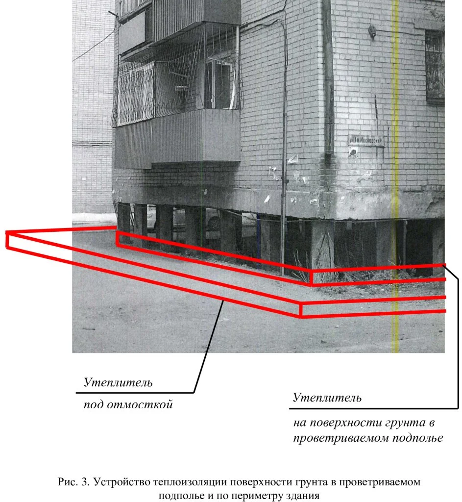 Для реализации указанных рекомендаций необходимо разработать проектно-сметную документацию, в которой учитывались бы также мероприятия для доступа к инженерным коммуникациям под перекрытием проветриваемого подполья для проведения ремонтных работ — с учетом уменьшения высоты подполья из-за укладки на поверхности грунта плит утеплителя толщиной до 40 см.