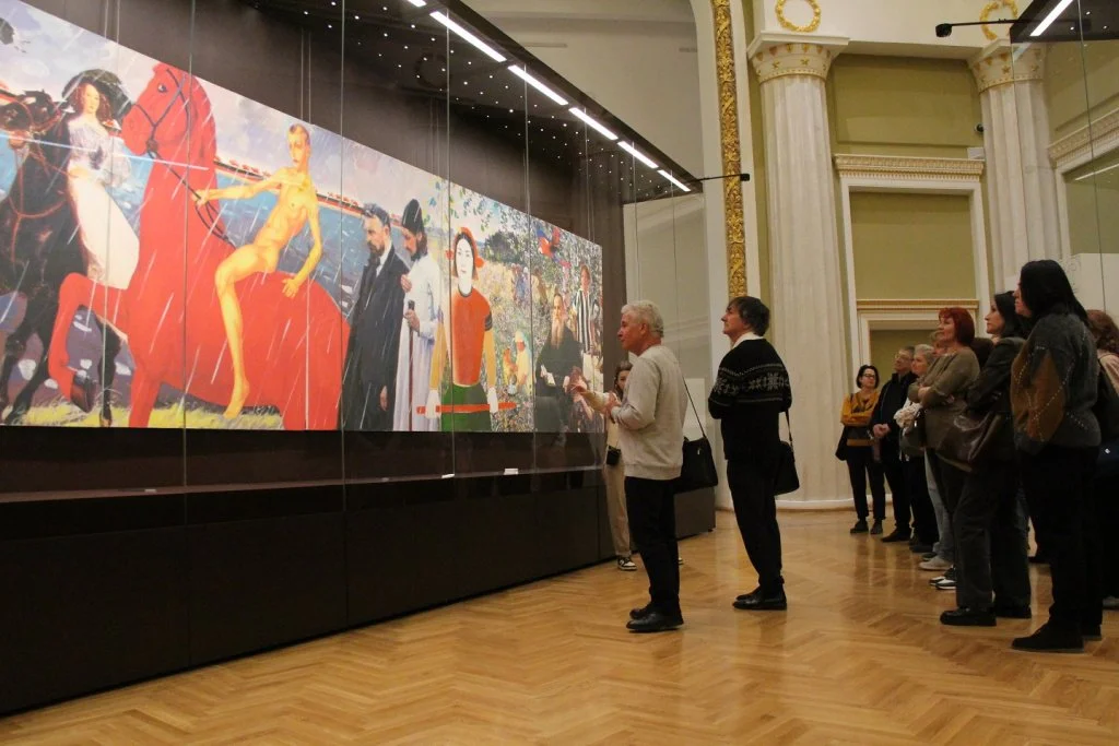 В ходе реставрации и исследования исторических документов стало ясно, что прототипами изображенных героев были реальные люди. Так, пожилой человек слева напоминает академика Ивана Павлова, в нарядно одетой женщине рядом можно узнать знаменитую актрису Аллу Тарасову, а справа — дважды Герой Соцтруда Назарали Ниязов.